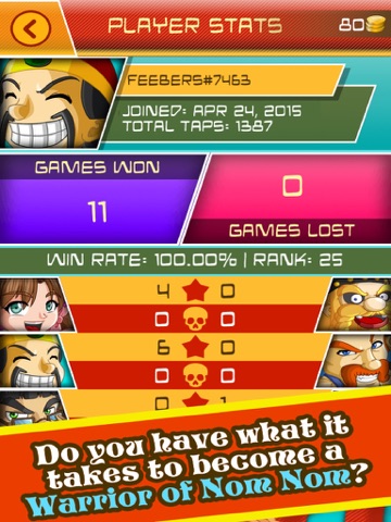 Warriors of Nom Nom is a competitive real time multiplayer food eating contest. First one who consumes his food, wins! Minus the calories, of course! Are you ready to become a Warrior of Nom Nom?