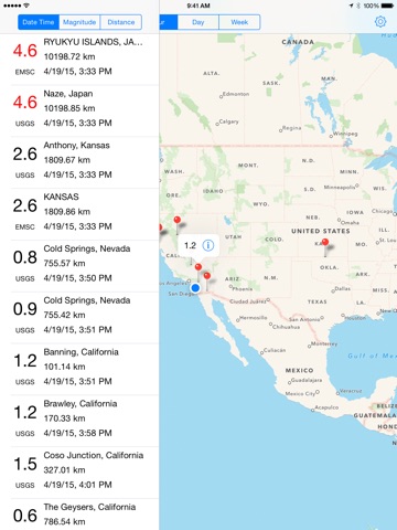 Whether viewing on the map or list Was That an Earthquake makes it easy to see where the ground is moving.