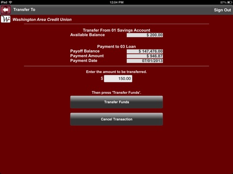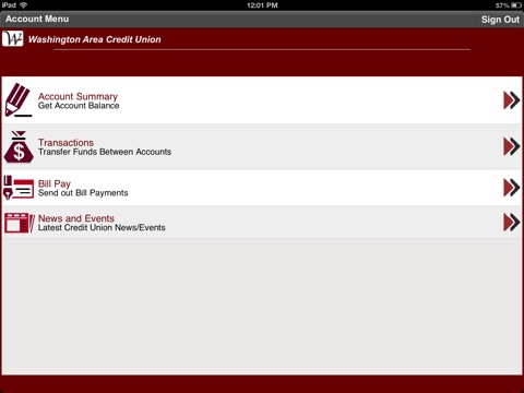 Washington Area Credit Union Mobile App requires an active account with the credit union. The account holder will also need to be enrolled with electronic services, such as Home Banking or Bill Payment.