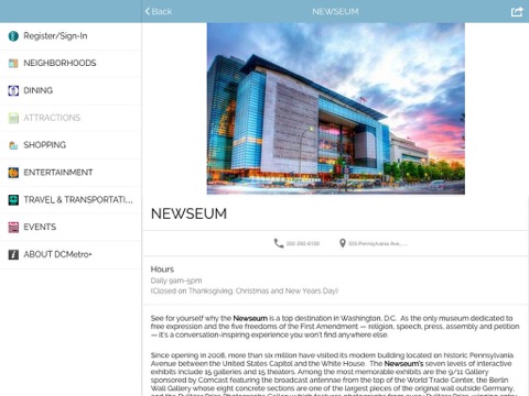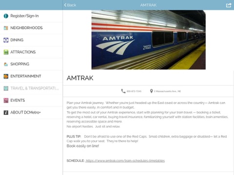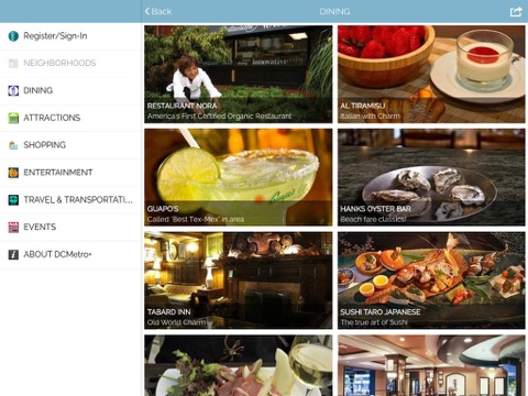 DINING: Not only sorted by cuisine and neighborhood, but the menu is readily at your fingertips along with quick directions and travel options.
