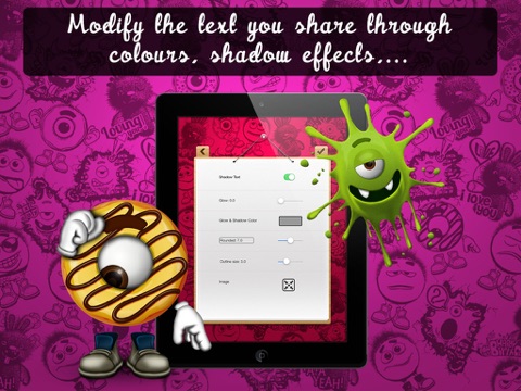 Send your device messages using stickers, color text, many fonts, many sizes, many backgrounds, many symbols and more !