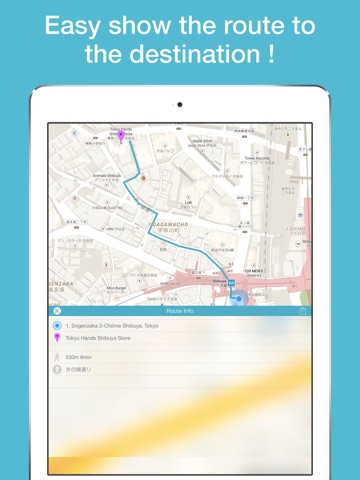 * If the route distance does not exist, this app display the straight-line distance. In that case, the time to the destination does not display.