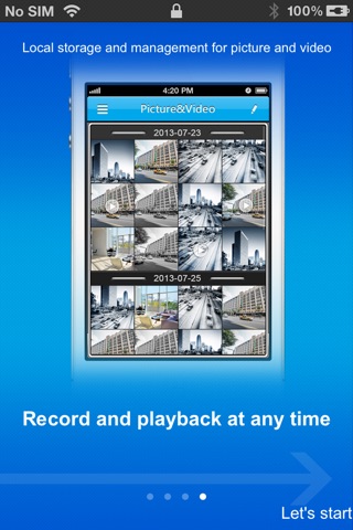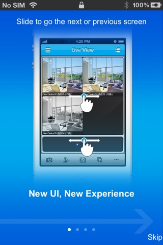 • Swipe for PTZ control and camera movement, pinch to zoom in and out in preview mode;
