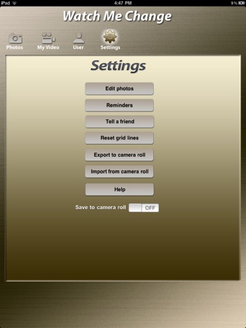 It works by reminding you to take a new picture at a predetermined time of your choosing each and everyday. The Watch Me Change App provides a ghost overlay of your last photo as well as gridlines to make sure your face is in the same spot every time. In just a few weeks you will have a collection of images ready to be converted into a video.