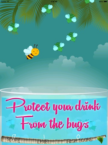 A nice hot day in the summer, you`re thirsty and you want a cool glass of water. But watch out! All those darn bugs around your glass! They also want a zip out of your glass! Objective: Don`t let the bugs drink! Tap on the bugs to destroy them! There are different kind of bugs flying around your glass. Like the queen bug, if you hit her all the bugs are flying away! The bug that is stuck in ice is also very helpful. There are a lot of levels to play, the bugs are flying faster and faster every higher level! So come play this nice summery game!