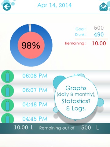 - Reminders that will remind you the water you need to drink in the rest of the day