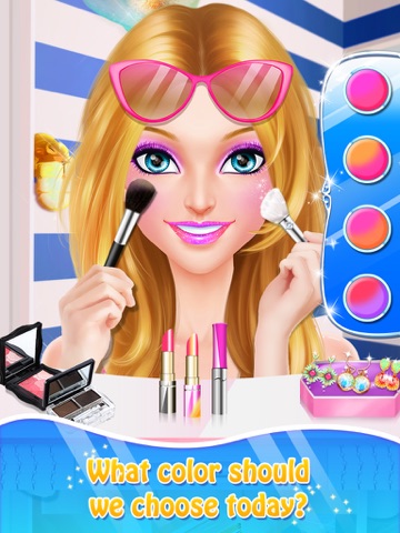 Help the girl get ready for an awesome adventure at the water theme park. Start by giving her a makeover that celebrates the hottest season of the year. Try on lots of fun and bright colored makeup styles. Apply mascara, lipstick and blush.