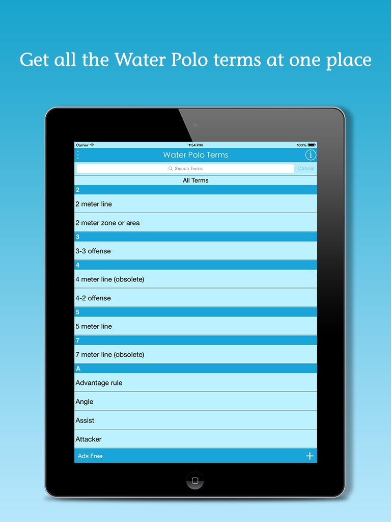 The application will be the best guide and online dictionary for the beginners and the water polo lovers with lot of in-built features to quickly search the newly added terms and organize their favorite terms with easy navigation. All the terms are arranged alphabetically with the meaningful and easily understandable description.