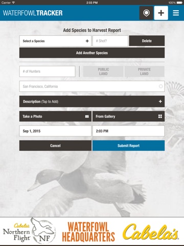 Waterfowl Tracker is a free app, made possible by Cabelas and created by Powderhook.