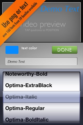 - choose from all installed fonts on the Iphone/iPod.(Currently over 160 faces, 59 families)