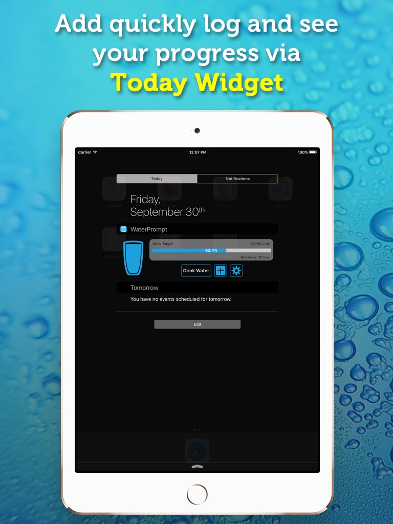 ● Log water quickly and easily, with a simple swipe