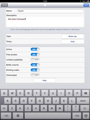 The WaterSupply.at app offers fast access to drinking water (portable water) sources close to your current location. It provides detailed information about water quality, a photo of the source, opening hours, etc. The app also offers means to improve water sources by adding new, and editing and rating existing entries. Under www.watersupply.at water sources can be later edited using the web interface.