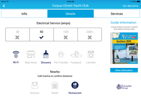 Explore up to 100 miles ahead when planning your stay. The app also provides a visual link to the corresponding Waterway Guide edition for your destination.