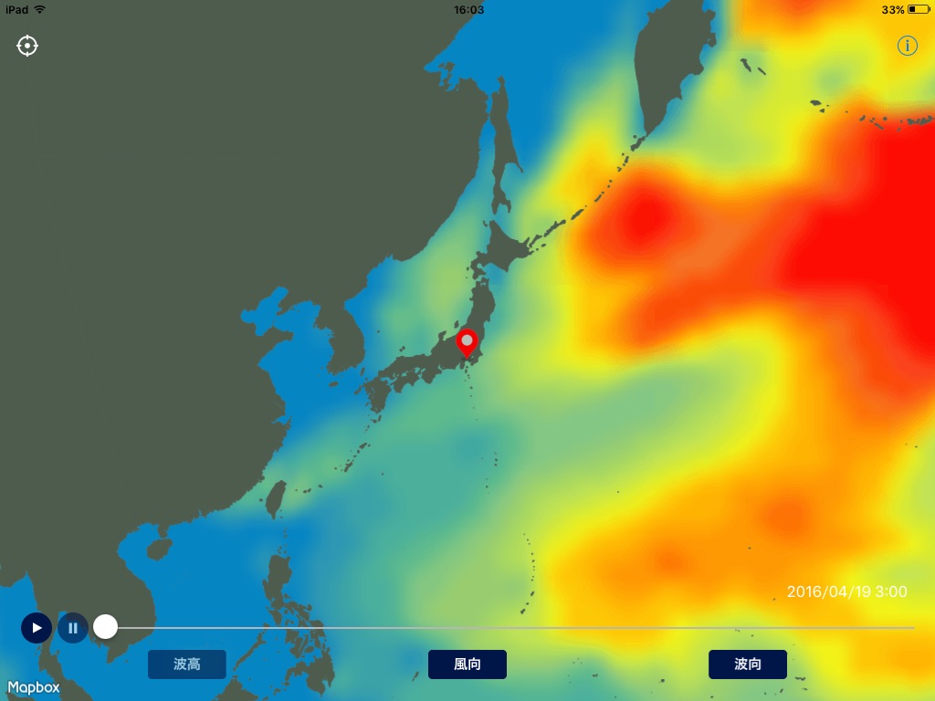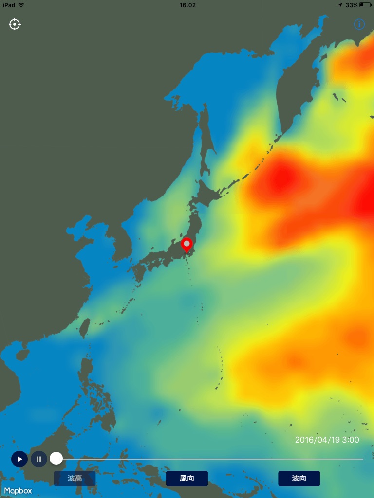 "Wave Simulator" show you animation for height of wave, direction of wave and wind.