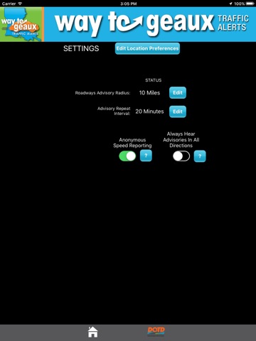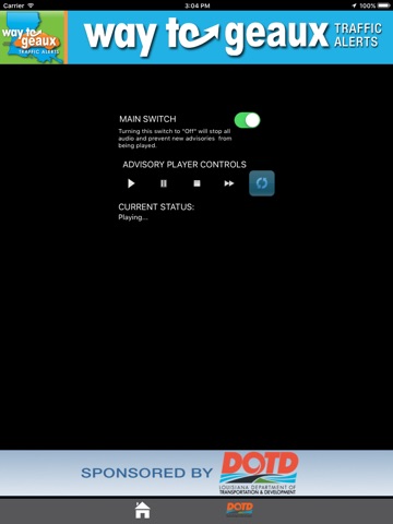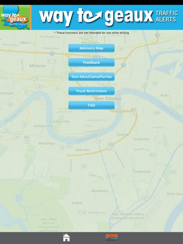 Start the application before starting out of your driveway. You will hear active Louisiana DOTD advisories that are within your range. Now put down the phone and focus on driving. There is now nothing you need to touch on the phone, and nothing you need to read on the phone. This is completely hands-free and eyes free.