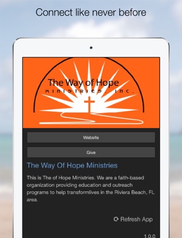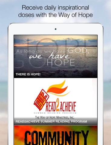 The Way Of Hope Ministries App allows users to receive daily inspirational vitamins (also called daily doses) and allow members to view upcoming events.