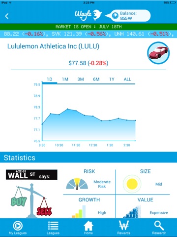 Welcome to Waylz, the world’s first fantasy investing game. Familiarize yourself with the stock market through our risk-free game using real-time investment data to explore trends, compete against your friends, and win awesome prizes as well as cash in some contests.