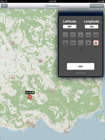 - double tap an area on the map to add a waypoint (double tapping again will return to the normal map)
