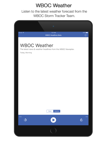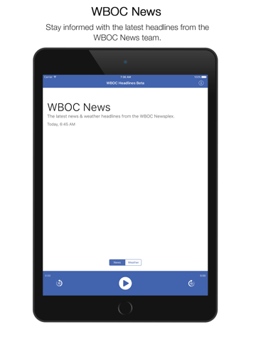 WBOC Headlines is an audio app that brings you Delmarvas latest news & weather throughout your day. Launch the app and get the latest from the WBOC Newsplex, once per hour on weekdays. Weekends coming soon!