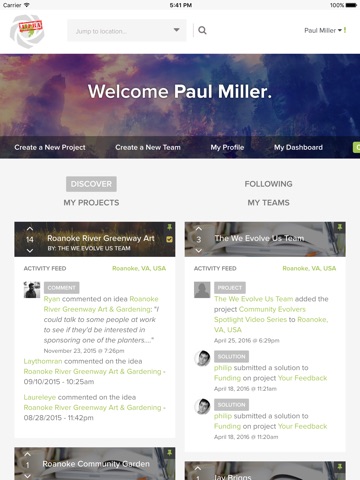 Work together with your city and those following your project to discuss steps, brainstorms ideas, and let others know about volunteer opportunities and events. If your project has financial needs, We Evolve Us offers two methods of raising funds for your project (and supporting the site in the process):