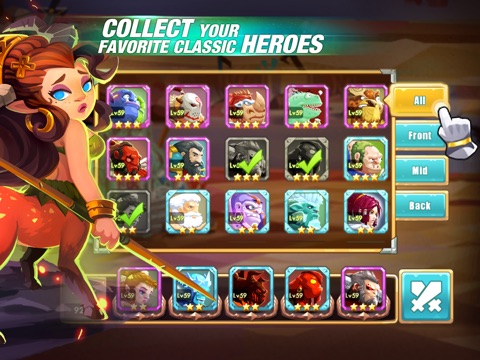 • Build a legendary hero guild. Go PVP against your friends in the Crusades and win loads of gold and even rare heroes.