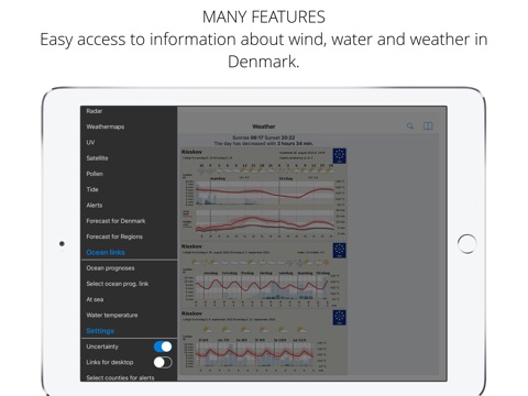 Due to DMI’s usage policy, only city forecasts can be shown directly in the app. Other data is linked to DMI’s mobile website.