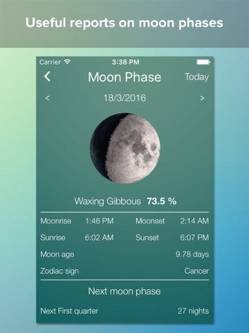 - Especially, the app comes with very helpful Moon Phases feature and other great additional ones