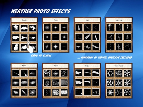 Efeitos maravilhosos. Permite acrescentar efeitos e fotos, em tamanhos variados, sem perder pixels.