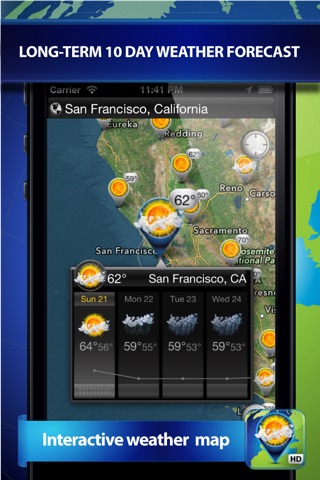 Interactive map allows you to easily pan and zoom so you can get unmatched detail of weather in your neighborhood or half a world away. The app will help make travel and activity planning more convenient. Apart from the current temperature, you will now be provided with weather prediction for the next ten days.