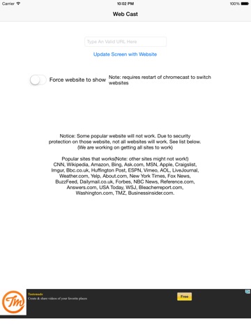 Web Cast - This is a Chromecast companion app. It allows you to display websites onto your TV with your chrome cast. This is DISPLAY ONLY, NAVIGATIONAL CAPABILITIES ARE NOT AVALIABLE.