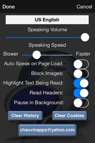 - Speaking Speed - Control how fast or slow web pages are read to you.