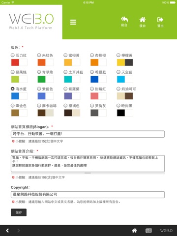 - 20種網站配色、超過300種小圖示供選擇,隨選隨換,亦可為您免費客製搭配符合您CIS的版色,想為網站換新裝嗎?輕而易舉。