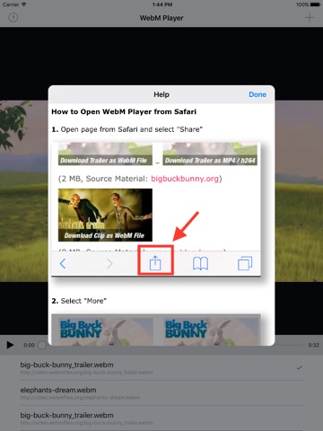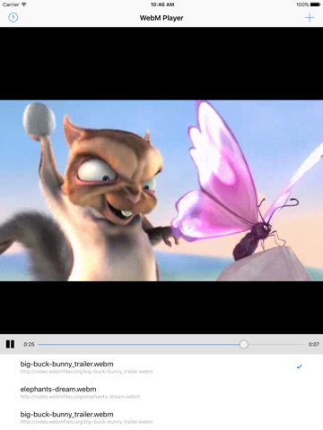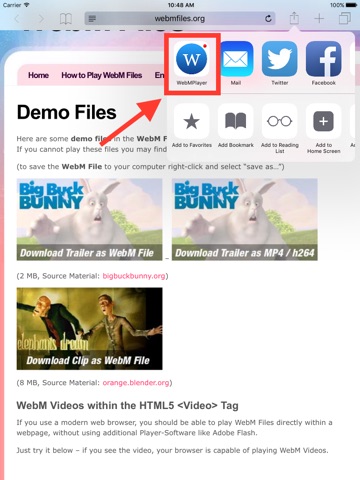 • Play WebM files from any iOS app which supports "share" menu