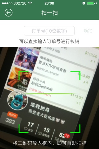 5.核销:支持二维码扫描和订单号输入两种核销方式;