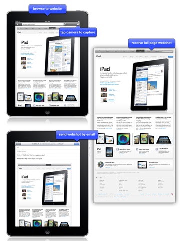 Tap on the camera icon to create a full screenshot including the hidden parts. WebShot makes one single screenshot of very long pages saving you the time to make several single screenshots.
