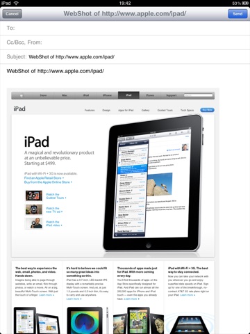The screenshot can be forwarded via email using the built-in messaging center, letting you make several screenshots without leaving the app.
