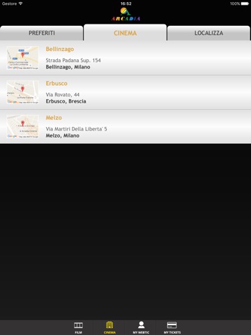 Applicazione per iPhone e compatibile iPad per la prenotazione e lacquisto dei posti nei cinema: