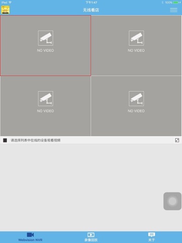Webvision NVR 是配套无线NVR套装使用的app。通过手机或平板可以随时随地查看高清晰度、流畅的实时视频,通过触摸屏幕可操作对摄像头进行方向转动,可以对家庭,商店,仓库等等的家用网络视频服务。