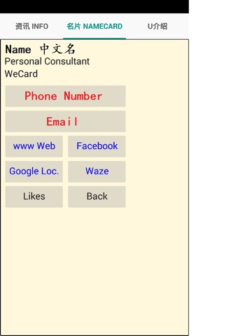 WeCard 名片,方便大家,有新山紧急电话,有急救方法,有重要资讯,美食...
