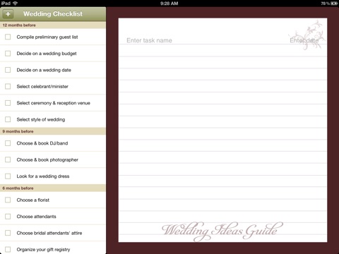 Wedding Checklist Guide comes with a basic checklist of over 40 items to help you track your wedding planning progress as recommended by the editor of Wedding Ideas Guide.