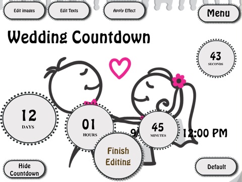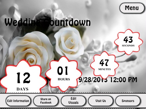 This app is a countdown for your mobile device. App works as invitation to events surrounding wedding or as countdown to big event. Also works great as anniversary countdown.