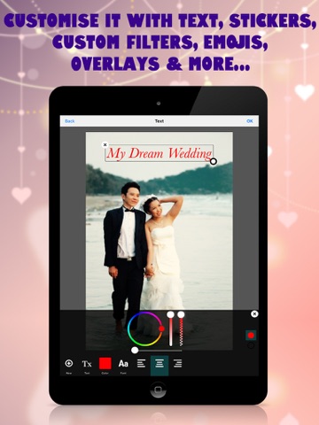 Showcase you wedding photos in attractive picture frames & photo frames. Try our free collection & buy others as in-app purchase. Give your wedding photos new & romantic look..