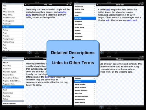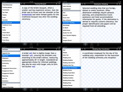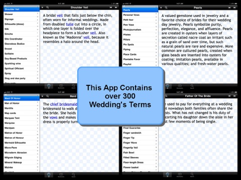 The Wedding Glossary is an application containing over 300 wedding-related glossary and keywords. It is an excellent preparation tool for everyone who is about to get married and want to know more about the wedding procedure and wedding ceremony.