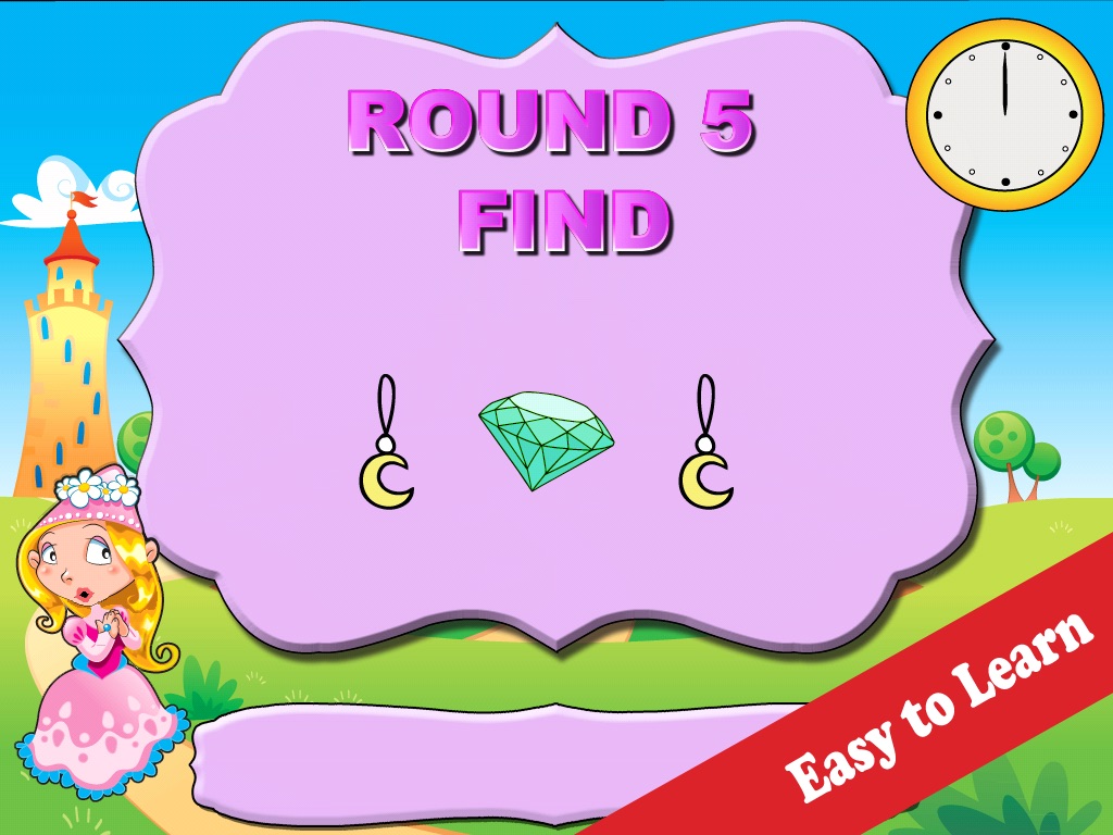The simple mechanisms of the game and its progression can be easily picked up by the youngest players. The varied shapes, colors and sounds provide a great experience while building pattern matching skills. Help the Princess find all her lost treasures throughout slowly increasing waves of difficulty.