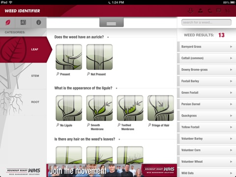 IDENTIFY: The Weed ID app lets you ID weeds based on key characteristic selections you have identified. It also allows you to search for weeds, view the weed database, and provide detailed descriptions and photos of the weeds.