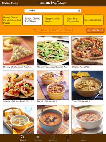 · Easy search capabilities that let you search by category of meal or by keyword, and an extended idea board that lets you find inspiration by ingredient, type, or a combination