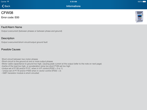 WEG has produced this app to help customers identify fault and alarm codes on their variable frequency drives and soft starters. Use this app to identify faults and alarms associated with the full line of automation products manufactured by WEG and to identify possible causes for the alarms.