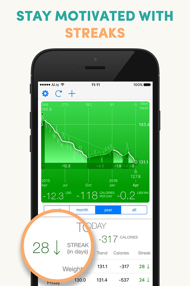 Our mission is to create the most innovative, beautiful, informative and helpful weight tracking app, one that shows you what is useful for you to see, enables you to understand your past, helps you to stay motivated, and empowers you. We hope it helps you on your journey.