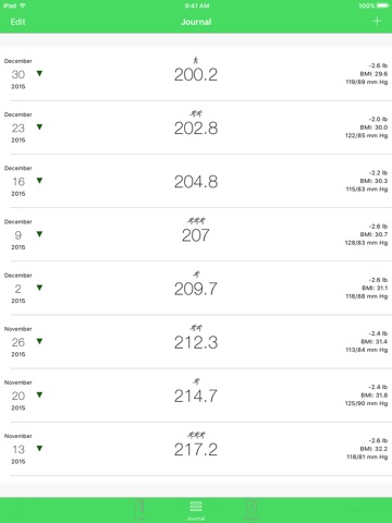 You can associate your blood pressure, waist, hip, daily activity and a note to each measured weight. You may also track multiple profiles, or use different profiles for different goals.