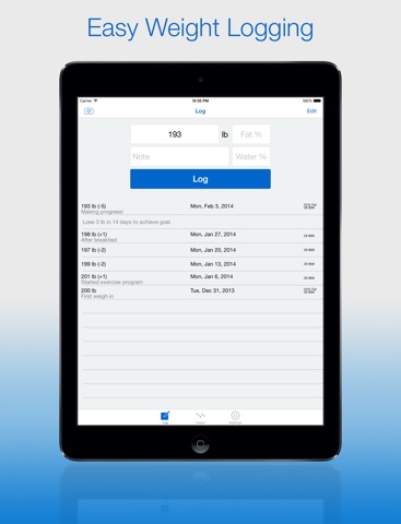 • Loads fast with an easy-to-use interface—just tap the one big log button to record your weight